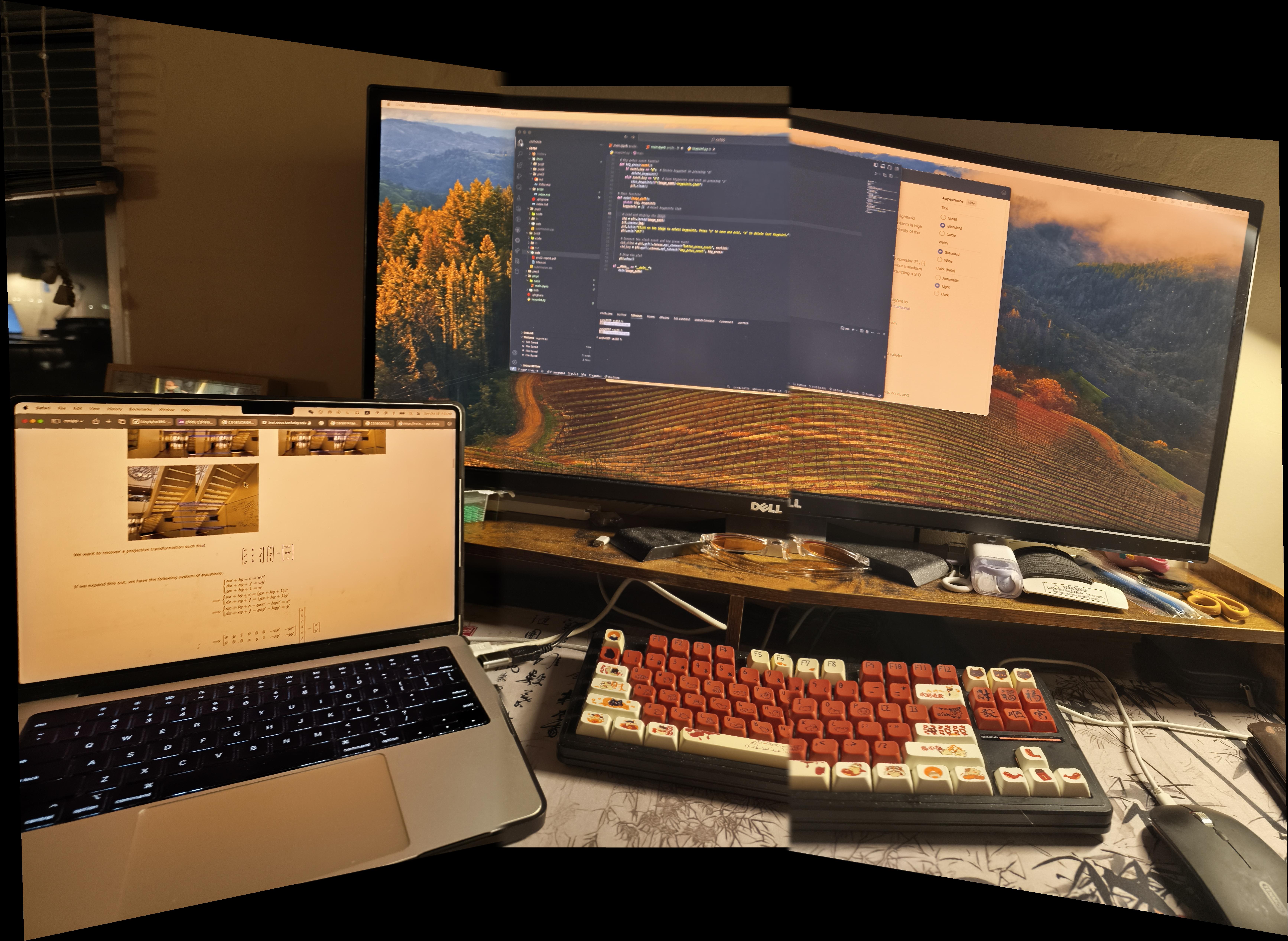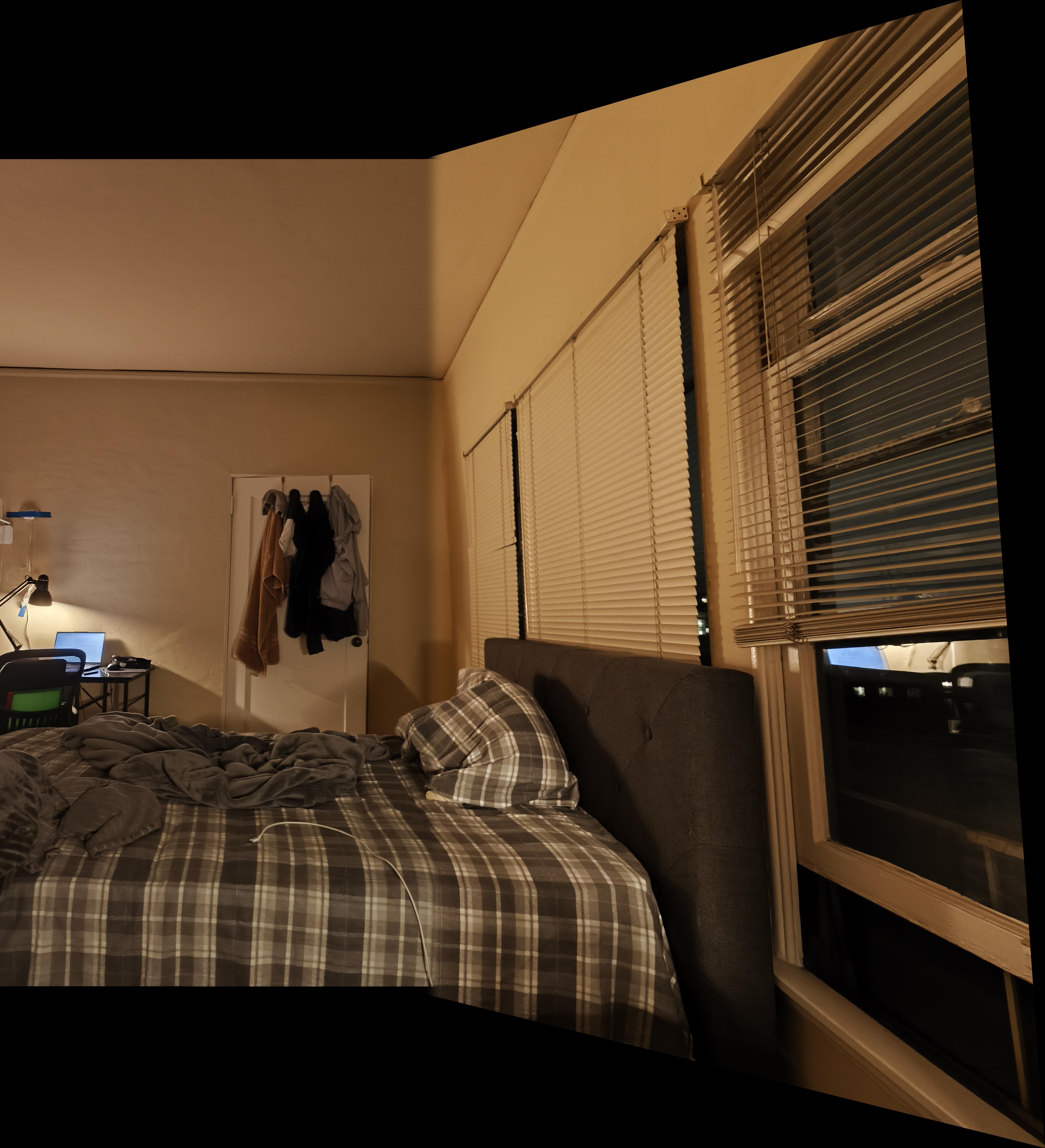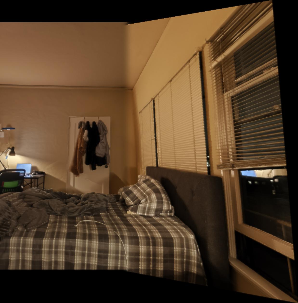 My phone camera seems to auto adjust the lighting after taking a photo, and I do not know how to turn off this feature. Therefore, my photos that I stitched together seems to have different lighting even though they were taken in the same setting at the same time. This caused the images look a bit funky after the stitching process. I tried my best to take photos in a setting where the auto color correction wouldn’t change too much in between photos, but it is still a tiny bit noticable in some photos. Maybe I can code an auto color correction algorithm such that the images are in the relatively same lighting in the future to fix this.