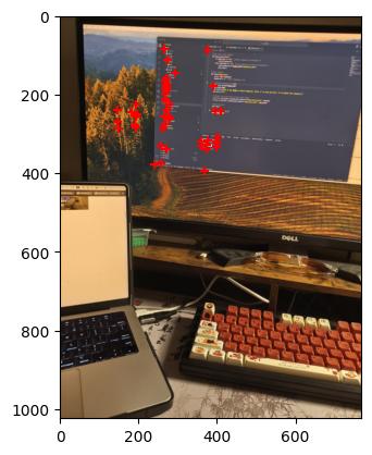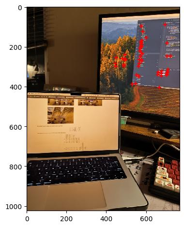 The Harris corner detetion detected around 18000 points in total on the downsampled image. For display purposes, I only plotted the first 5000 points.
